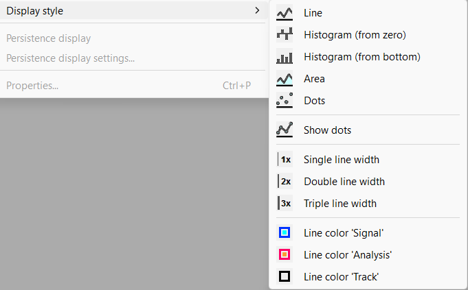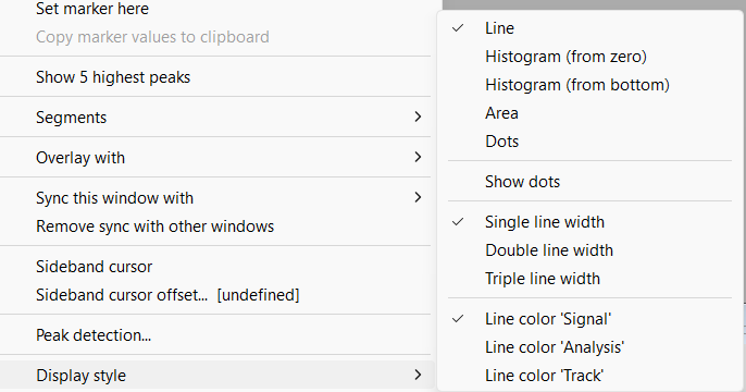 All display options are available through the main menu, context menu (right-click on the signal window), or in the toolbar.