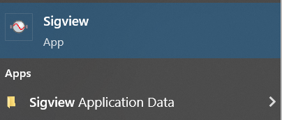 You can also access that folder directly from the Windows Start Menu by typing "SIGVIEW Application Data" in the search box on the Windows taskbar:
