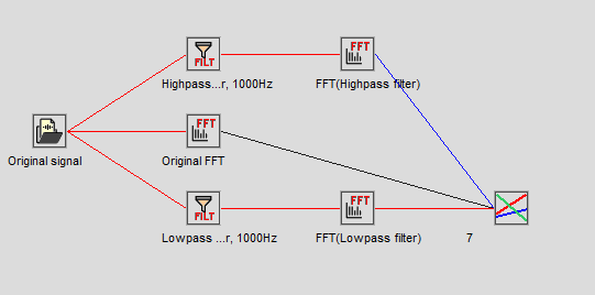 Signal graph/Linked windows: If one window is created as a result of the analysis from any other window, then those two windows are linked. The network of linked windows works like a complex analysis machine where the output of each window is the input for its child windows. It means that all changes in one window will cause its child windows to recalculate and redraw their content. A good example is a part of the signal and it’s FFT; if you slide a part of the signal through the whole signal, its FFT result window will recalculate on each move to show the FFT result of each new signal segment.