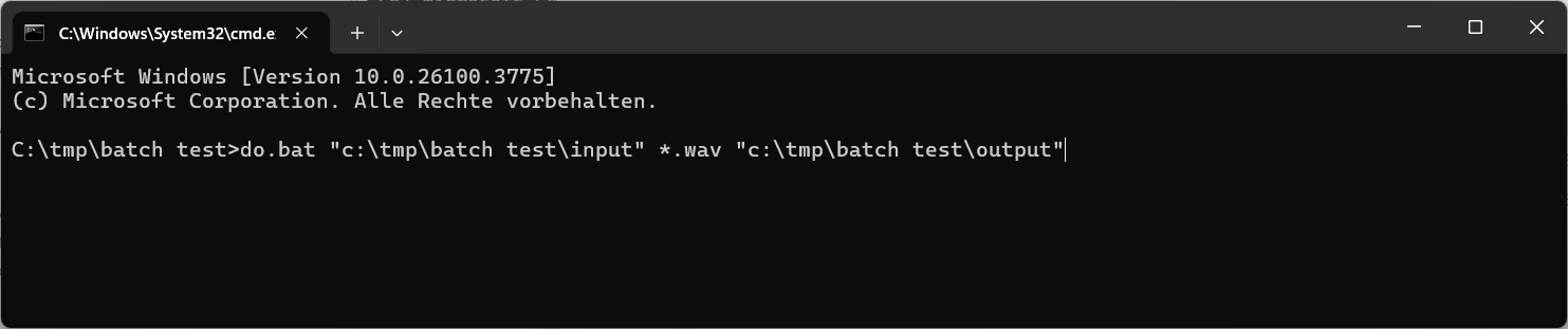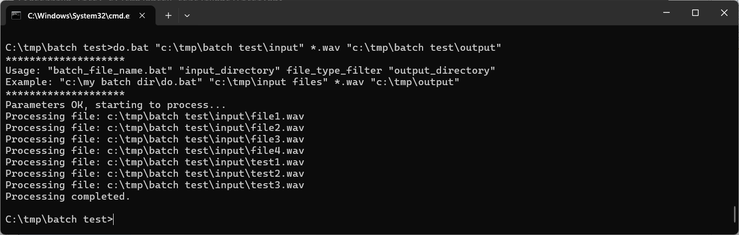 - The name of the input directory where your input files are stored ("C:\batch test\input" in this example)