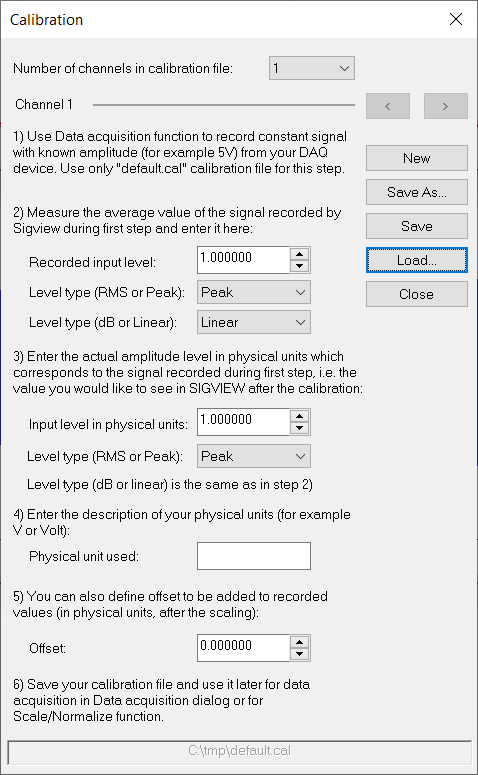 - "default.cal": It leaves recorded data from the DAQ device just as they are, without any conversion. You should not change the content of this file.