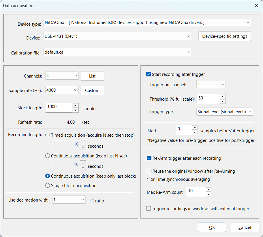 toolbar button. A dialog appears which allows you to choose the data acquisition device and to change the data acquisition settings: