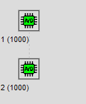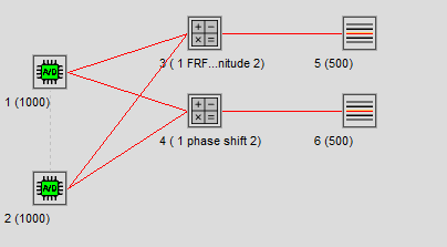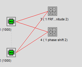 3. We will record 3 short signal blocks for each test, and for each block, new FRF magnitude and Phase will be calculated. We would like to average all 3 calculations. Therefore, Averager windows should be attached to both analysis windows. This will result in the following Workspace:
