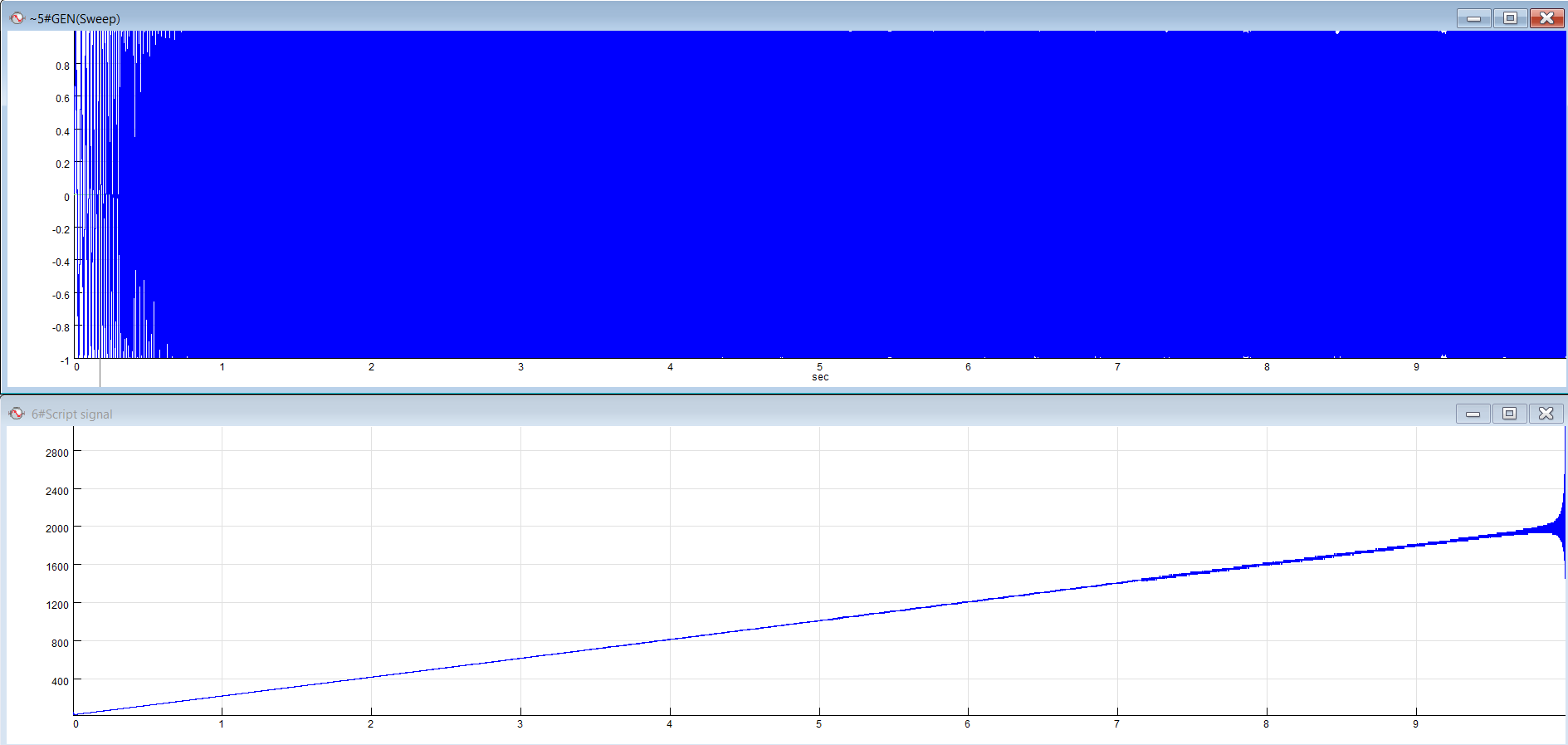 The following examples shows a generates sweep signal and a corresponding instantaneous frequency calculated by using this tool.