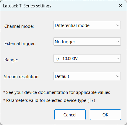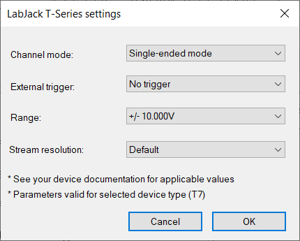 For more information about settings, please see LabJack online help at: