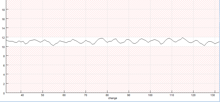 The value log signal will try to automatically determine values for its X-axis by backtracking through the analysis chain to the root signal window. If those X values are equidistant (i.e. the difference between two consecutive values is always the same), those will be displayed on the X-axis of the instrument log. If not, the X-axis will switch to a unit called "change" where each new value will simply be labelled with its index, i.e. 0,1,2,3,4...