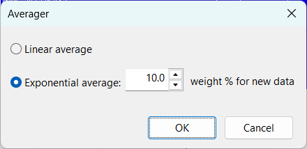 After opening Signal tools/Averager menu option or toolbar button, the following dialog will appear: