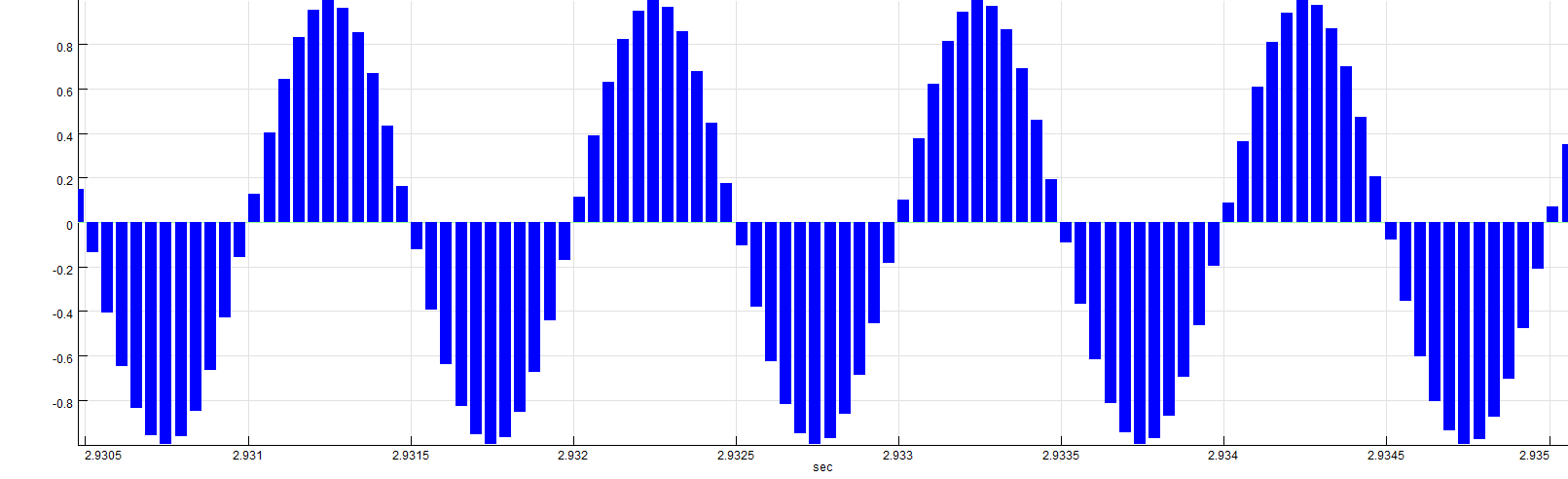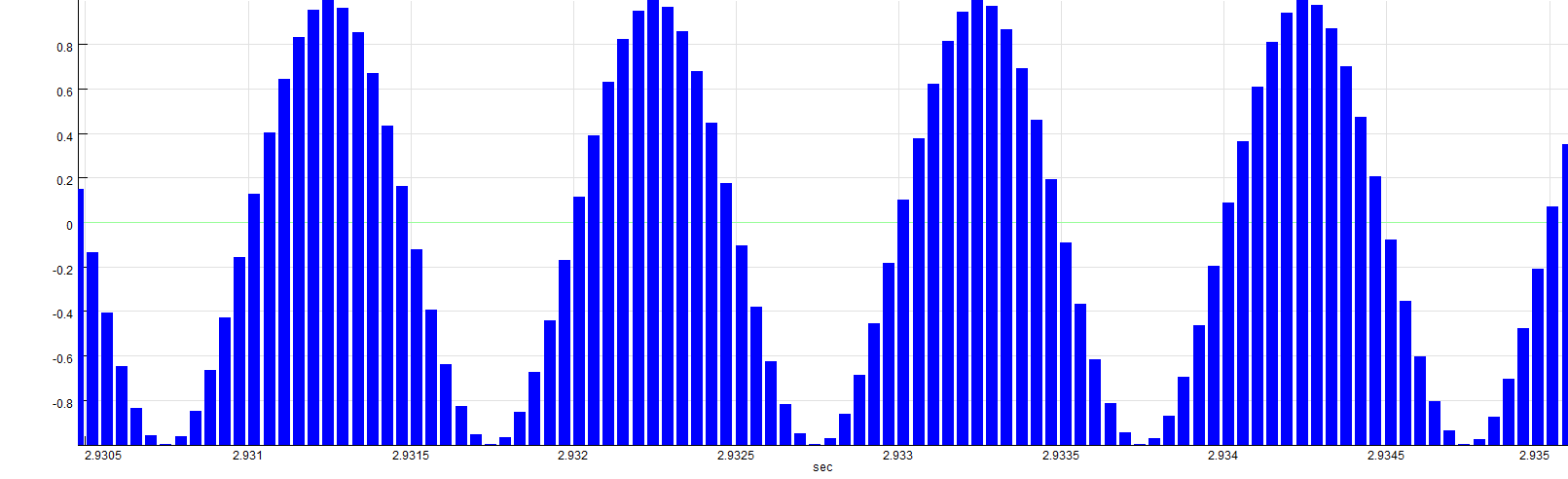Histogram (from zero): Draws a vertical rectangle (bar) for each signal value, starting from zero. Useful for: Low-resolution signals, Histogram-like plots, Probability distributions.