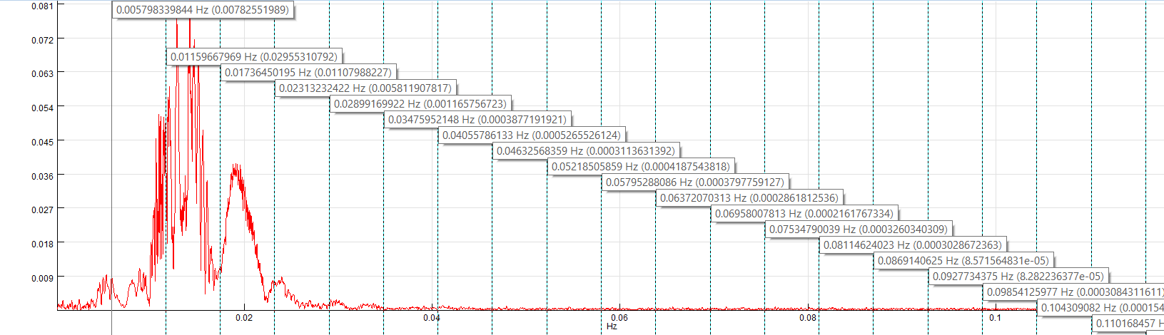 If you would also like to see the X/Y values for each harmonic cursor, just press and hold SPACE key. A label will be shown next to each cursor until you let go the SPACE key: