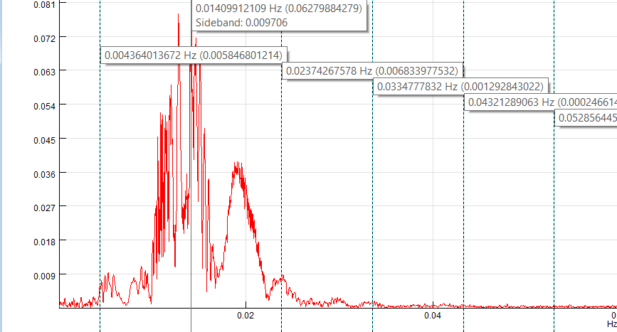 If you would also like to see the X/Y values for each sideband cursor, just press and hold SPACE key. A label will be shown next to each cursor until you let go the SPACE key: