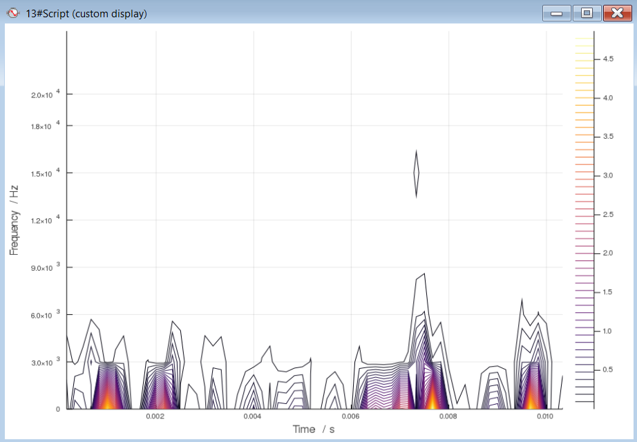 This Julia-based plotting custom tool provides similar information as built-in Spectrogram function, but using a slightly different graphical representation.