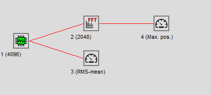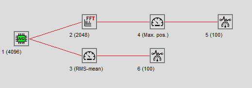 5. Now go to the data acquisition signal window and select the "Data acquisition/Start" menu option (or button in the toolbar). Recording from the sound card will begin and instruments will change their values. On each instrument value change, the last value will be stored in a corresponding log window; the log window signal will grow as new values come.